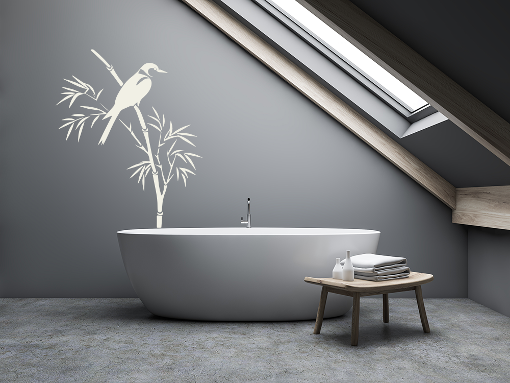 Wandtattoo Bambushalm mit Vogel