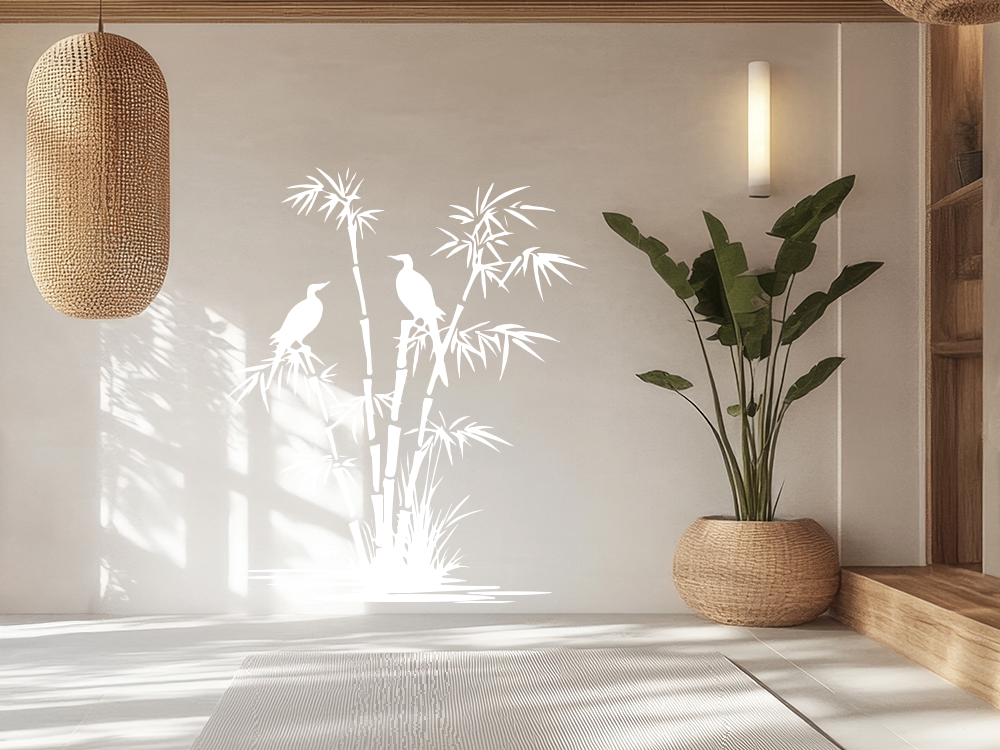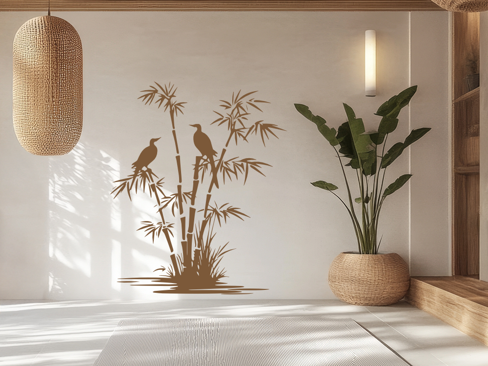 Wandtattoo Bambusstrauch und Vögel am Ufer