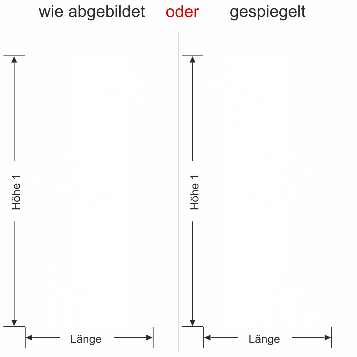 Tragen Sie eines der beiden Maße in der Bestellmaske in die Kästchen „Länge“ oder „Höhe“ ein.