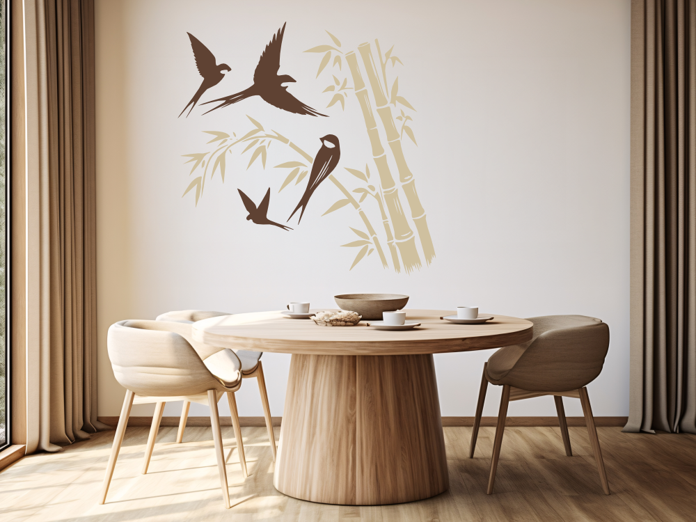 Wandtattoo Bunter Bambus mit Vögeln