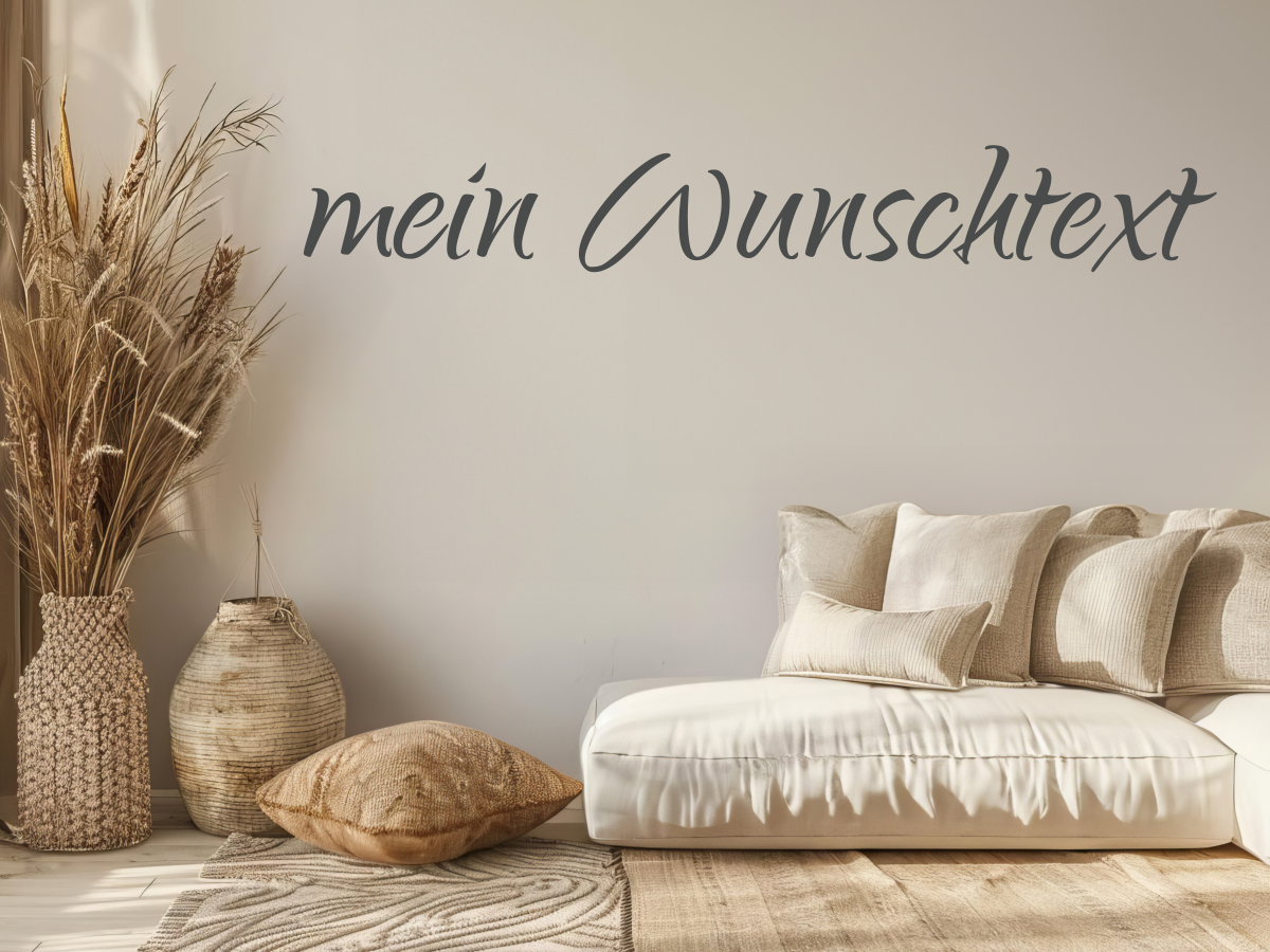 Diese Art von Wunschtext Aufkleber setzt sich von anderen ab: Der verspielte Text in Handlettering Optik überzeugt durch seinen kalligrafischen Charakter. Diesem Anblick kann sich kein Betrachter lange entziehen. Probieren Sie es aus und schmücken Sie Ihre Wand mit diesem tollen Wandtattoo.